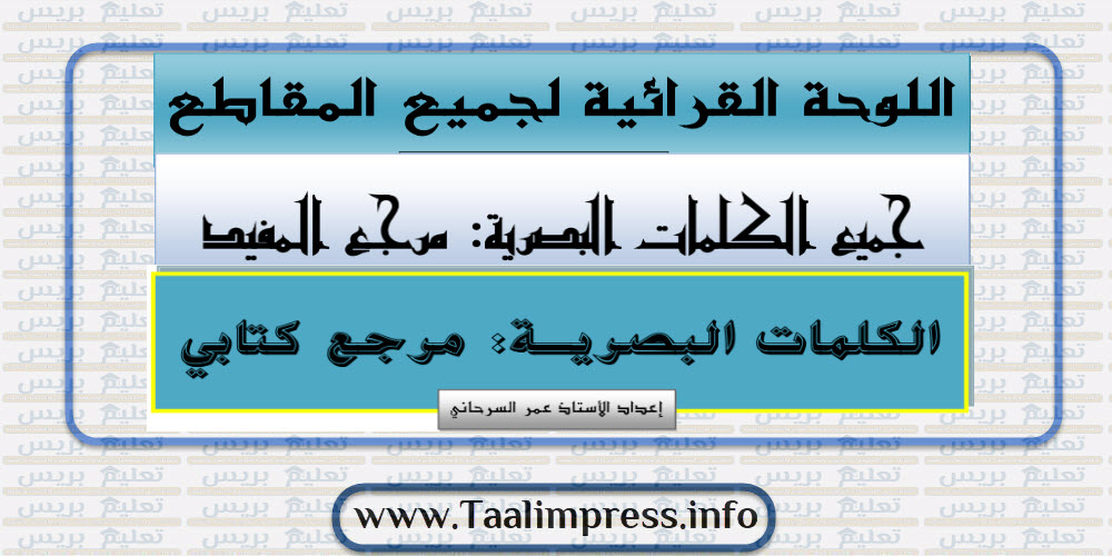 لوحة قرائية لجميع المقاطع والكلمات البصرية لمرجعي المفيد وكتابي في اللغة العربية للمستوى الأول ابتدائي