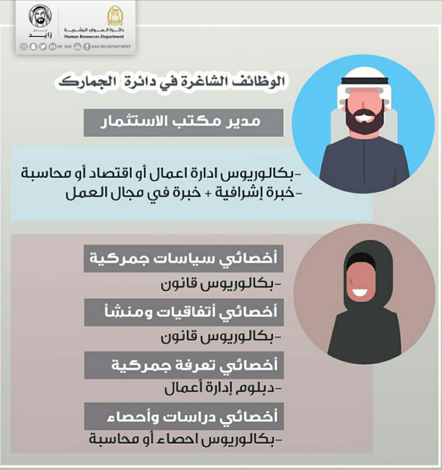 وظائف دائرة الجمارك وبلدية براس الخيمة