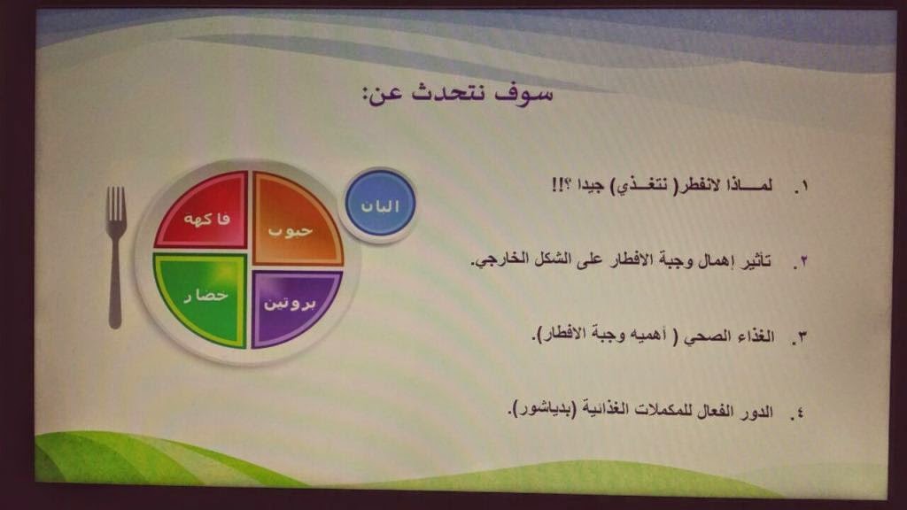 محاضرة عن الافطار الصحي لحياة افضل في مدرسة امامة بنت حمزة ابتدائية امامة بنت حمزة