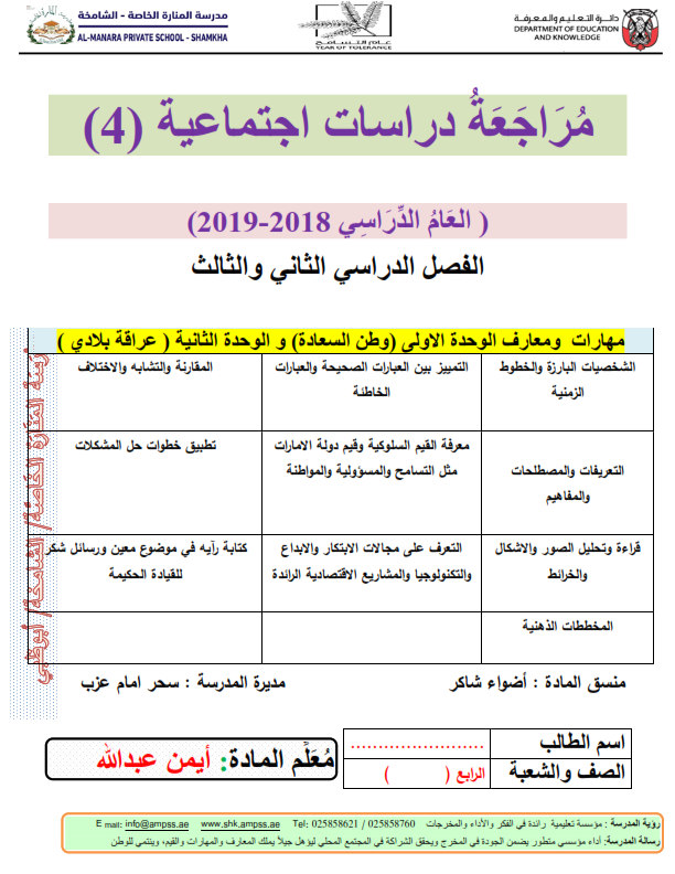 مراجعة الدراسات الاجتماعية للصف الرابع الفصل الدراسي الثاني و الثالث